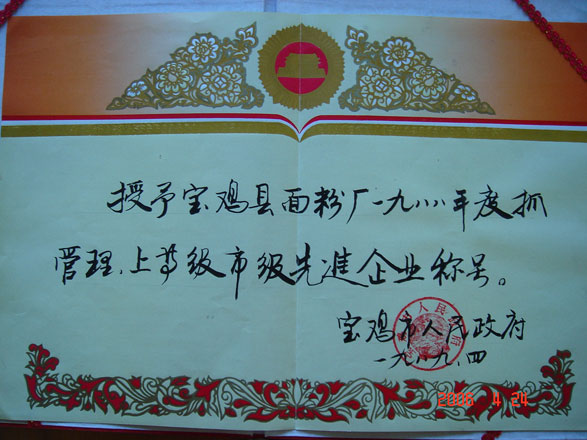 [下一篇] 1987年荣获陕西省优质产品证书