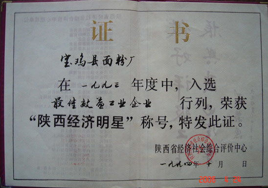 1994年荣获“陕西经济明星”称号