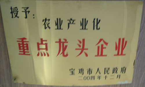 2004年宝鸡市人民政府授于农业产业化重点龙头企业称号