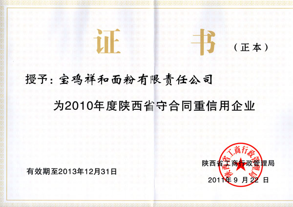 2010年度陕西省守合同重信用企业