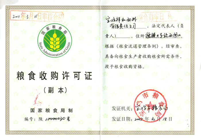 粮食收购许可证